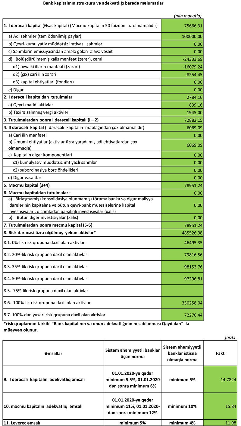 Bankın cəmi gəlirlərinin 217 min manat artması ilə bərabər, xəmi xərcləri 2 milyon 120 min manat azalıb.