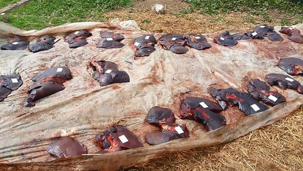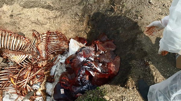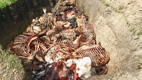 Fermanın həyətində xüsusi qazılmış çalaya atın müxtəlif orqanları (atın baş-ayağı, qaraciyərləri, mədə və bağırsaqları, at skeletləri, atın dəriləri və s.) yığılaraq qanuna müvafiq şəkildə zərərsizləşdirilmişdir.