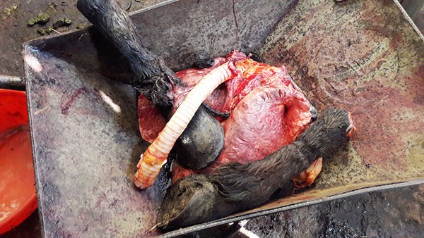 Abbasov Saqif Tərlan oğluna məxsus köhnə quşçuluq fermasında kəsilmiş atların daxili orqanlarından (qaraciyər və ağciyər s.) və baş nahiyəsinin ətlərindən nümunələr götürülərək müayinə üçün Respublika Baytarlıq Laboratoriyasına göndərilmişdir.