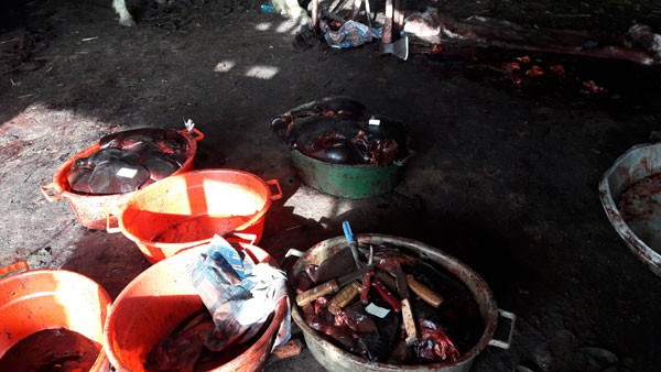 Eləcə də fermanın ərazisində ətrafa səpələnmiş çoxlu miqdarda köhnə at sümükləri (kəllə sümüyü, ön və arxa ətraf sümükləri, qabırğa və digər skeletlər) aşkar edilmişdir. Həmçinin köhnə quşçuluq fermasında kəsim üçün primitiv quraşdırılmış müxtəlif alət və ləvazimatlar (3 ədəd balta, 6 ədəd bıçaq, 2 ədəd primitiv quraşdırılmış tal, ətləri asmaq üçün qarmaqlar, 1 ədəd işıq generatoru, 1 ədəd bıçaq itiləmək üçün dəzgah, çoxlu miqdarda laxtalanmış qan gölməçələri) antisanitar vəziyyətdə aşkar olunmuşdur.