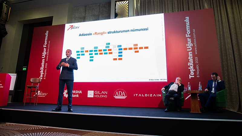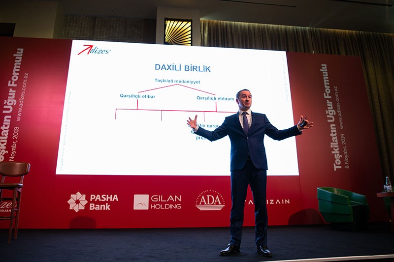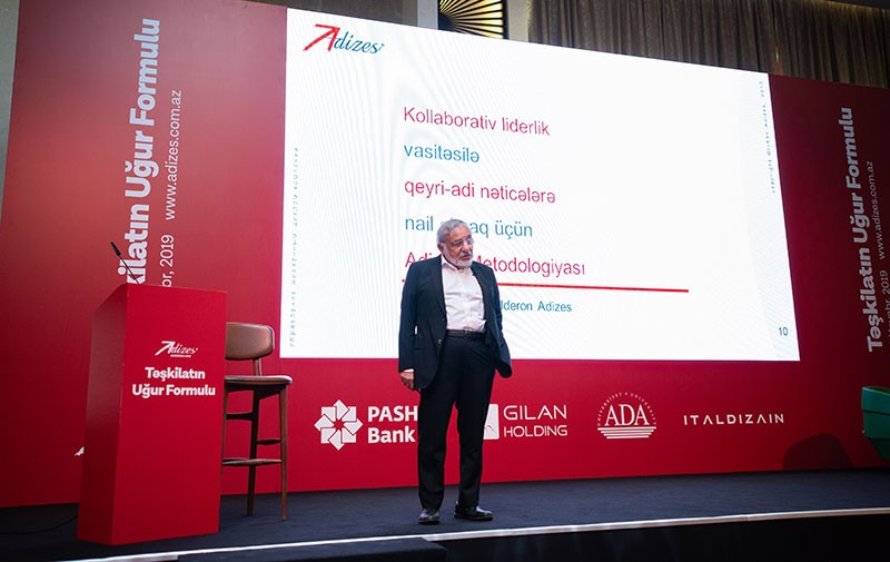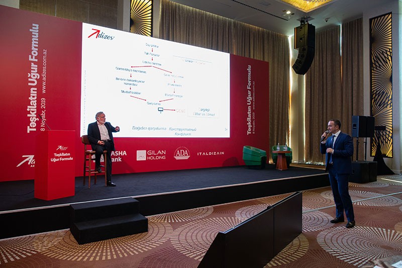İtsxak Adizes bazarda lider olmağın, effektiv menecment sisteminin qurulması, uğurlu idarəetmə vasitələrinin tətbiqi üzrə innovativ yanaşma kimi şirkət inkişafında əhəmiyyətli rol oynayan mövzulardan danışıb. O, çıxışında fərqli insanları bir araya gətirərək onlardan güclü komanda yaratmağın effektivliyini də vurğulayıb.