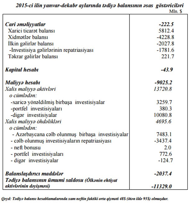 2016-cı ilin yekunlarına görə, Azərbaycanın ehtiyat aktivləri 539 milyon dollar həcmində azalıb. 2015-ci ildə azalma 11,33 milyard dollara bərabər idi.