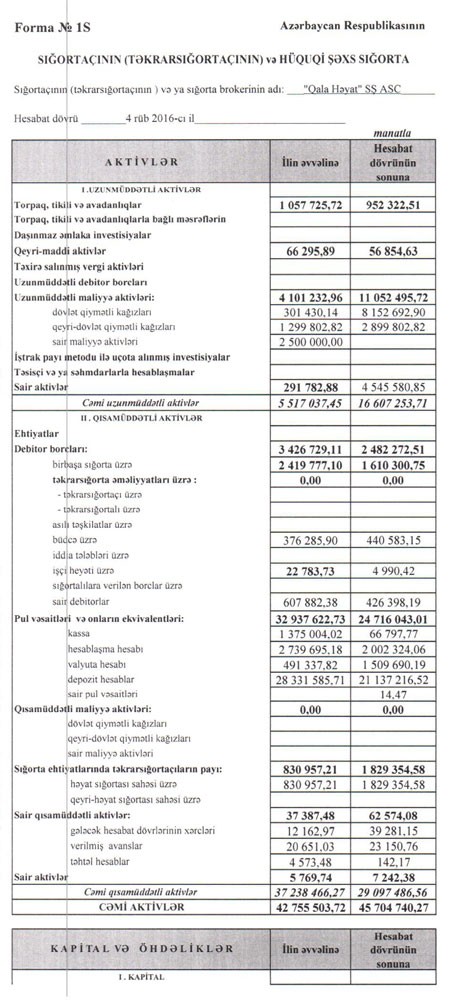 “Marja” şirkətin maliyyə hesabatlarına istnadən xəbər verir ki, ötən il, “Qala Həyat”ın cəmi gəlirləri 40 milyon manat, cəmi xərcləri isə 36 milyon 736 min manat təşkil edib. 2015-ci ildə Şirkətin cəmi gəlirləri 29 milyon 469 min manat, cəmi xərcləri isə 26 milyon 711 min manat olmuşdu.