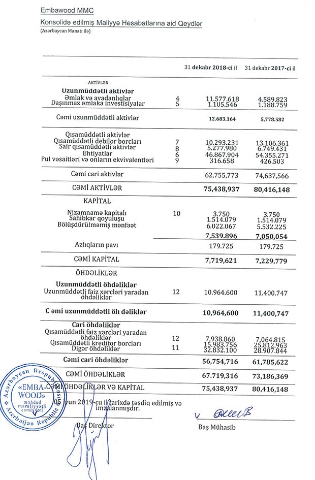 Ötən ilin sonunda “Embawood" MMC 6 milyon 22 min manat bölüşdürülməmiş mənfəətə malik olub.