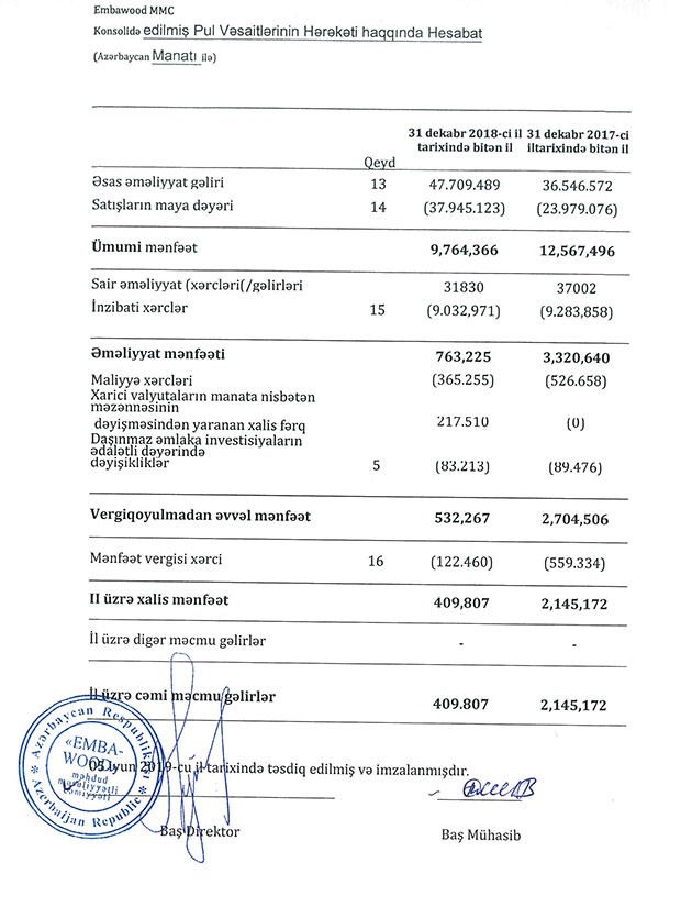 Amma xərclərin artması “Embawood"un artan gəlirləri silib