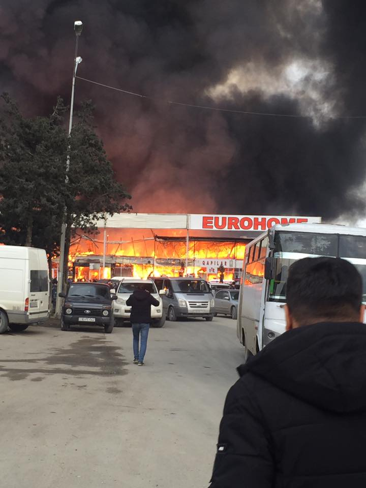 Tikinti materiallarının topdansatış bazarı kimi tanınan "Eurohome” ticarət mərkəzindəki yanğının sönsürülməsi üçün əraziyə yanğınsöndürmə qüvvələri cəlb olunub.