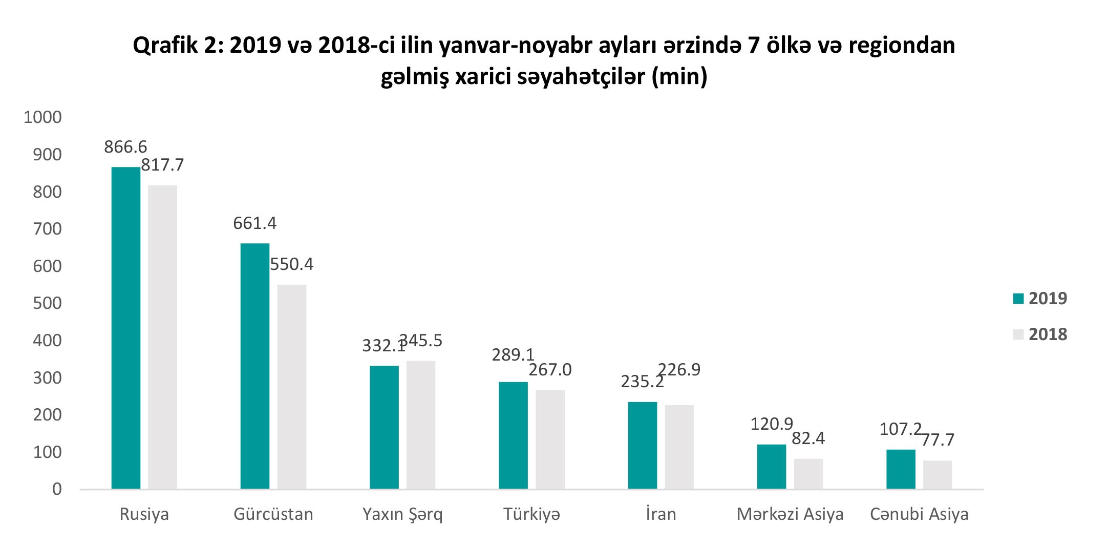 "Marja" Dövlət Turizm Agentliyinin aylıq hesabatına istinadən xəbər verir ki, 2019-cu ilin yanvar-noyabr ayları ərzində Yaxın Şərq ölkələrindən Azərbaycana 345.5 min nəfər səfər edib. Bu, ötən ilin eyni dövrü ilə müqayisədə 13.4 min nəfər və ya 4% azdır. 2018-ci ilin 11 ayı ərində Yaxın Şərq ölkələrindən Azərbaycana 332.1 min nəfər gəlmişdi.