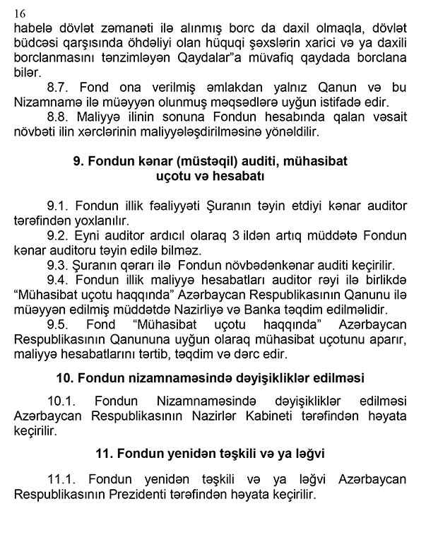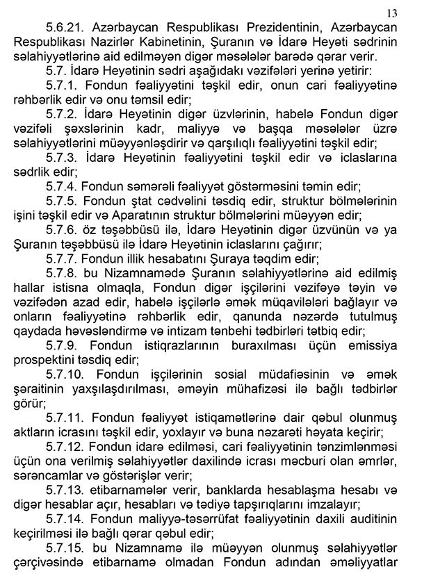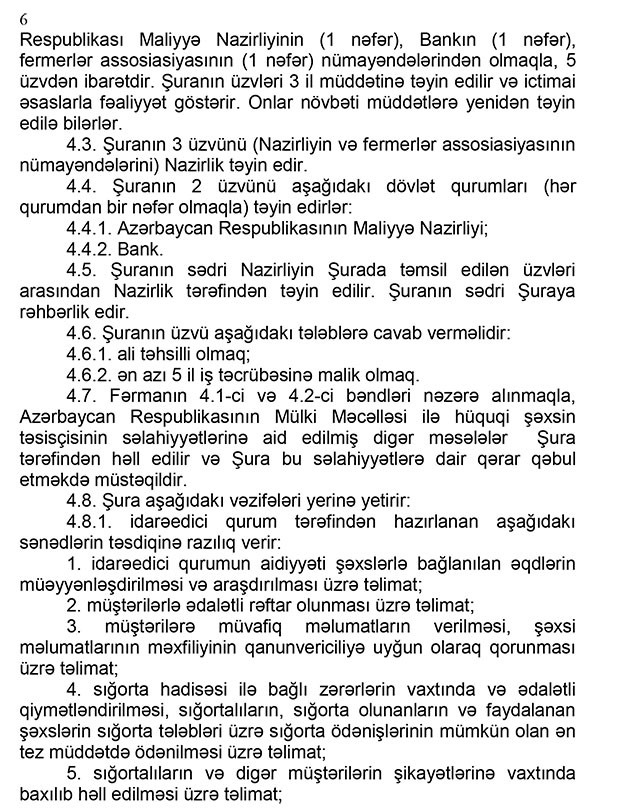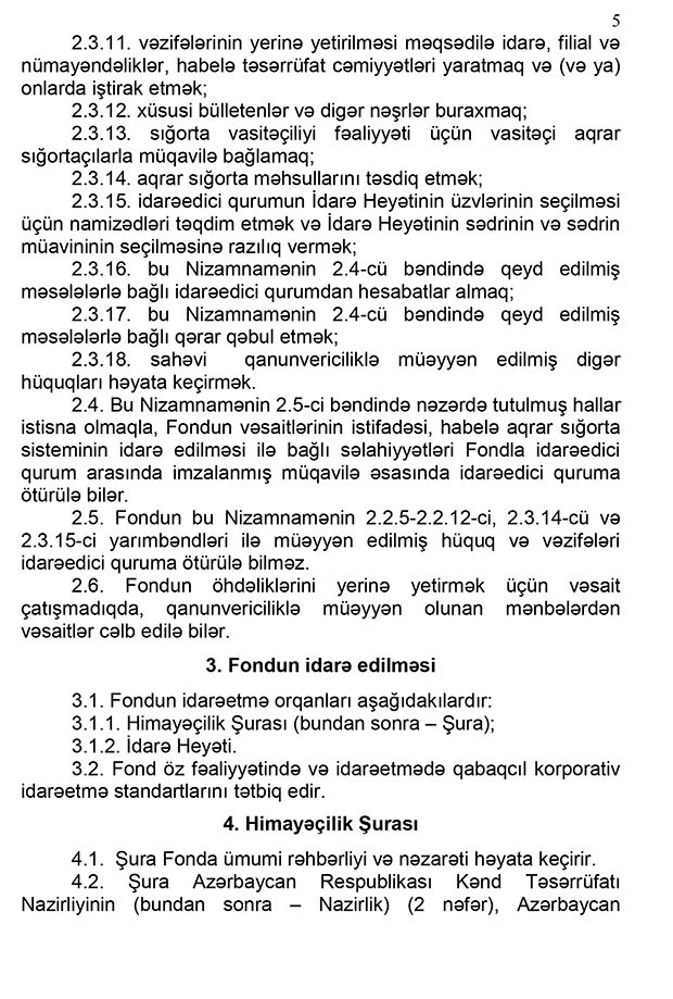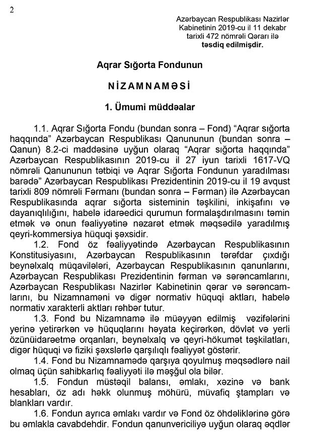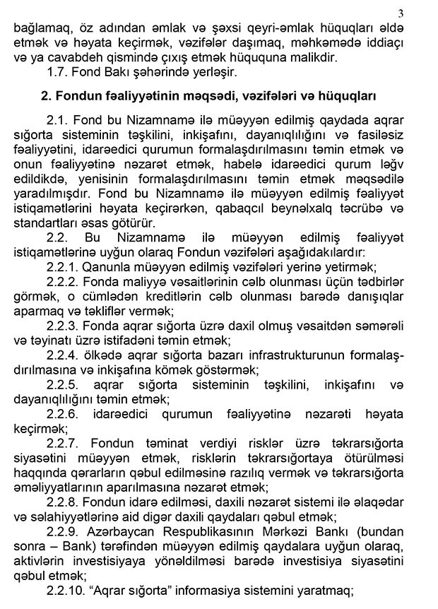 “Marja” xəbər verir ki, Qərar ilə “Aqrar Sığorta Fondunun Nizamnaməsi” təsdiq edilib.