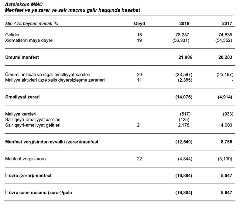 Yerli hesabatlar əsasında tərtib edilmiş hesabatda “Aztelekom” MMC 2018-ci ili 18 milyon 812 min manat xalis mənfəət ilə başa vurduğu qeyd edilmişdi.
