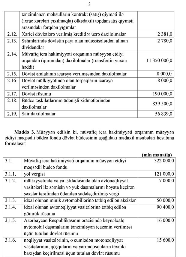 Dövlət büdcəsi kəsirinin yuxarı həddi 2 milyard 760 milyon 200 min manat məbləğində təsdiq ediib.