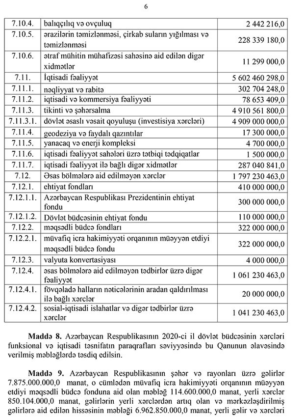 Azərbaycan Prezidenti İlham Əliyev "Azərbaycan Respublikasının 2020-ci il dövlət büdcəsi haqqında" Qanunu imzalayıb.