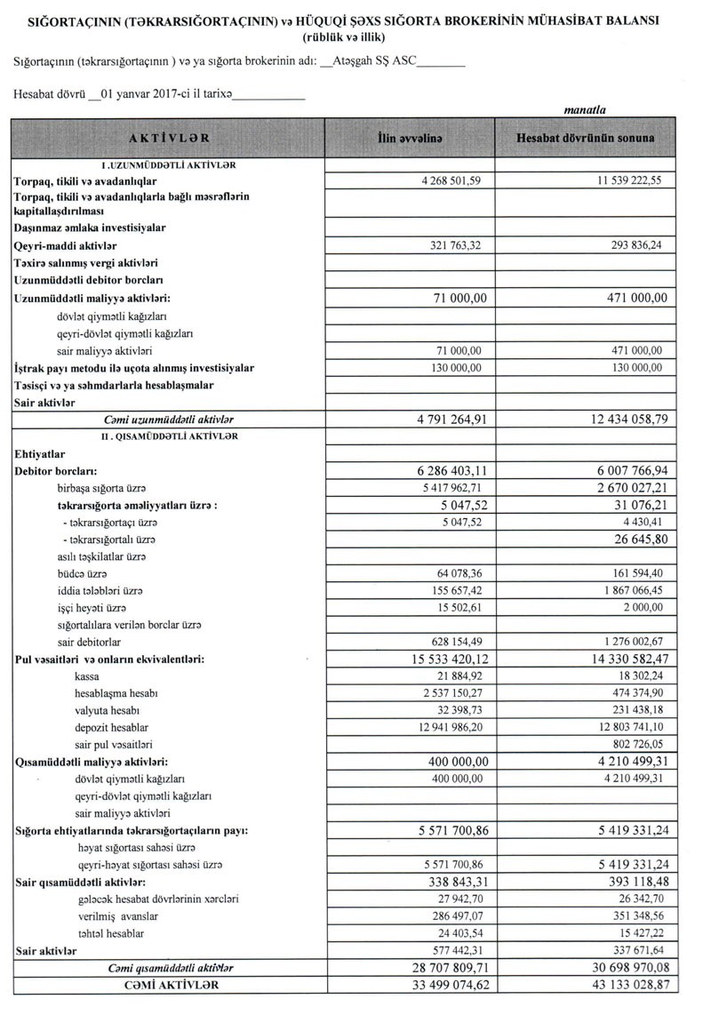 “Marja” Şirkətin maliyyə hesabatlarına istinadən xəbər verir ki, ötən il “Atəşgah Sığorta”nın cəmi gəlirləri 42 milyon 601 min manat, cəmi xərcləri isə 42 milyon 228 min manat təşkil edib. 2015-ci ildə Şirkətin cəmi gəlirləri 46 milyon 37 min manat, cəmi xərcləri isə 45 milyon 252 min manat olmuşdur.