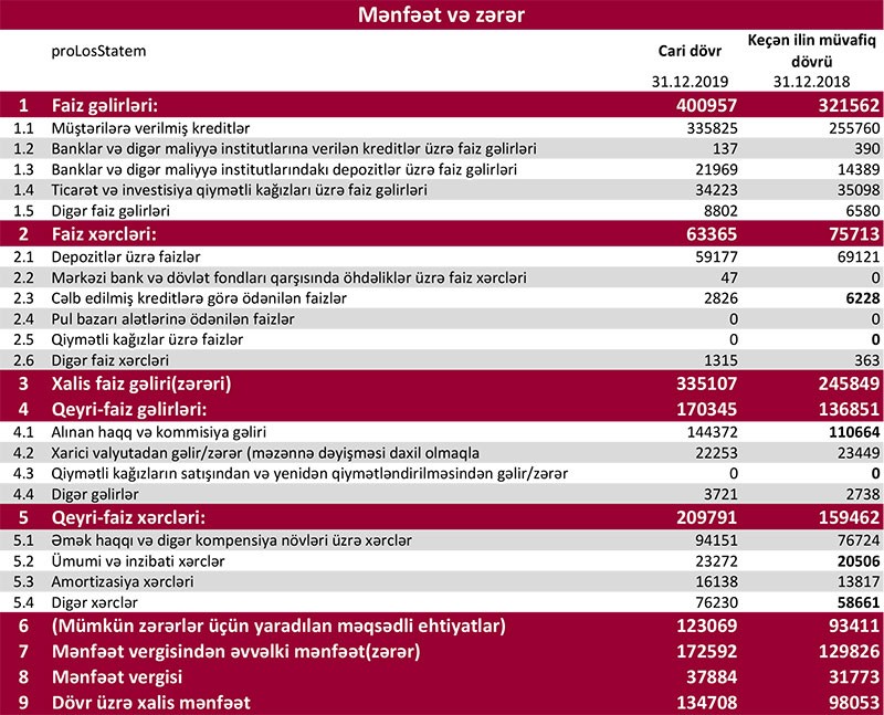 “Marja” xəbər verir ki, 2018-ci ildə 321 milyon 562 min manat təşkil etmiş faiz gəlirləri 2019-cu ildə 400 milyon 957 min manata, 2018-ci ildə 136 milyon 851 min manat təşkil etmiş qeyri-faiz gəlirləri isə 2019-cu ildə 170 milyon 345 min manata yüksəlib.