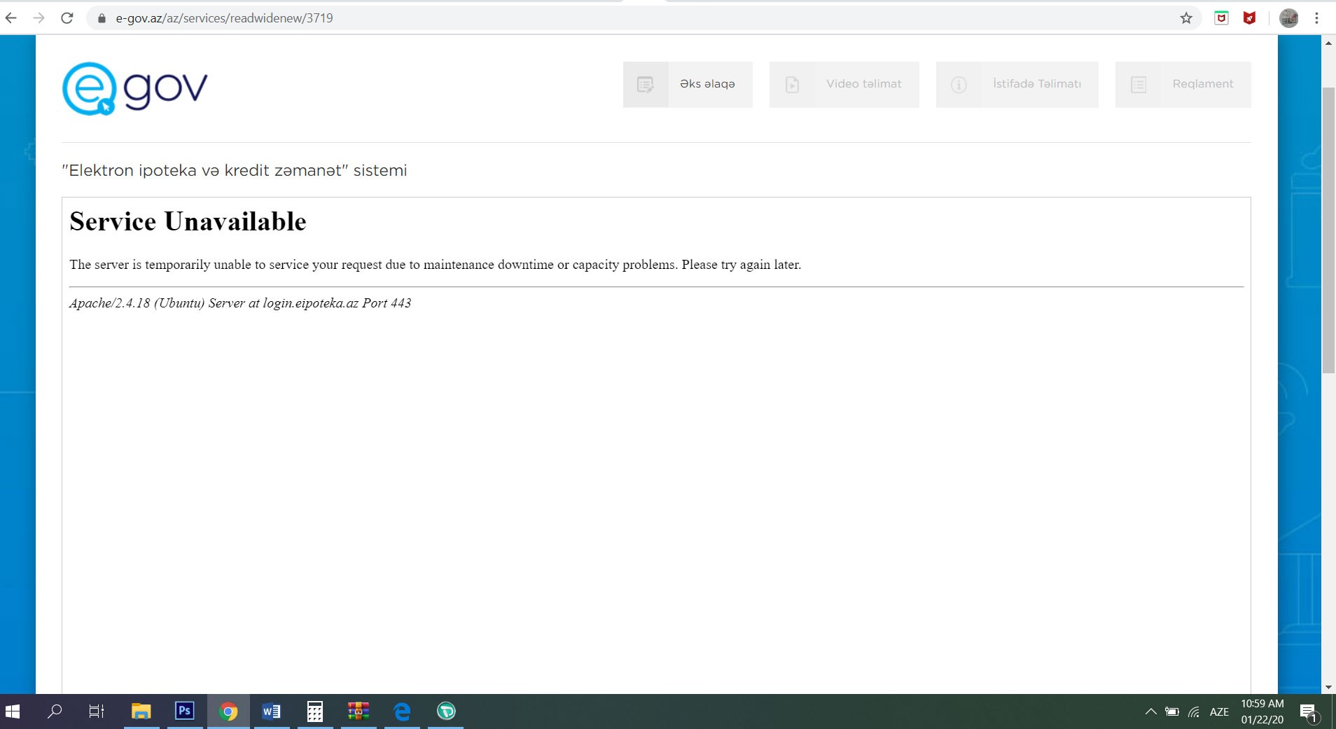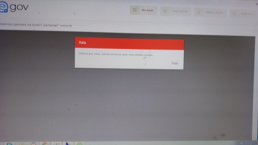 "Marja" xəbər verir ki, saat 10:00-a az qalmış "Elektron ipoteka və kredit zəmanət" sisteminə daxil olmaq mümkün olmayıb.
