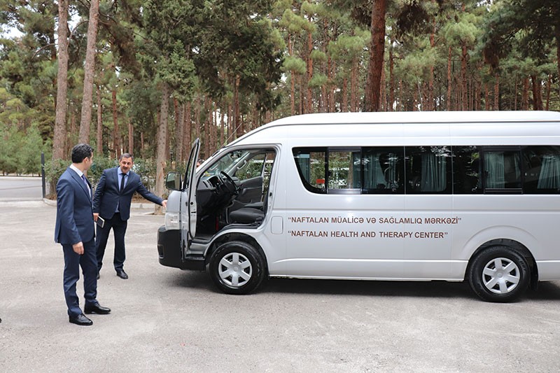 Naftalan Şəhər İcra Hakimiyyətinin başçısı Vüqar Novruzovun təşəbbüsü və şəhərdə fəaliyyət göstərən “Naftalan Müalicə və Sağlamlıq Mərkəzi”nin dəstəyi ilə şəhərə gələn turistlərin məmnunluğunu və onların rahat gediş-gəlişini təmin etmək məqsədi ilə Naftalan - Goran dəmiryolu stansiyası - Naftalan istiqamətində müasir standartlara cavab verən Toyota markalı sərnişin daşıyan nəqliyyat vasitəsi istifadəyə verilib.
