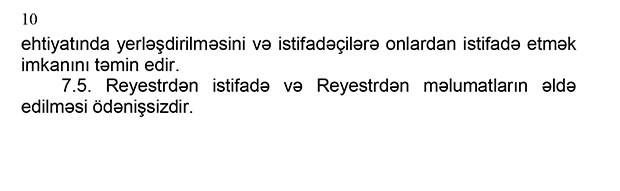 Reyestrdən istifadə və Reyestrdən məlumatların əldə edilməsi ödəniş olacaqdır.