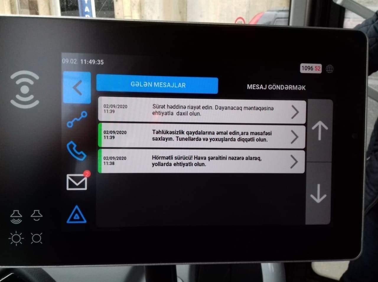 Belə ki, artıq mərkəzi dispetçer xidmətindən avtobus sürücülərinə zəruri məlumatlar ötürülür. Sürücülər onlara mərkəz tərəfindən ötürülən yazılı və ya səsli məlumatları avtobuslardakı “sürücü ekranı” cihazları vasitəsilə əldə edir.