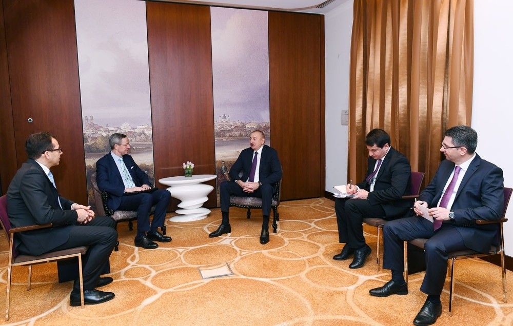 Bu gün Prezident İlham Əliyev Münxen Təhlükəsizlik Konfransı çərçivəsində Almaniyanın Şərqi Biznes Assosiasiyasının Cənubi Qafqaz ölkələri üzrə işçi qrupunun rəhbəri, “Veridos GmbH” şirkətinin baş icraçı katibi Andreas Reşmayer ilə görüşüb.
