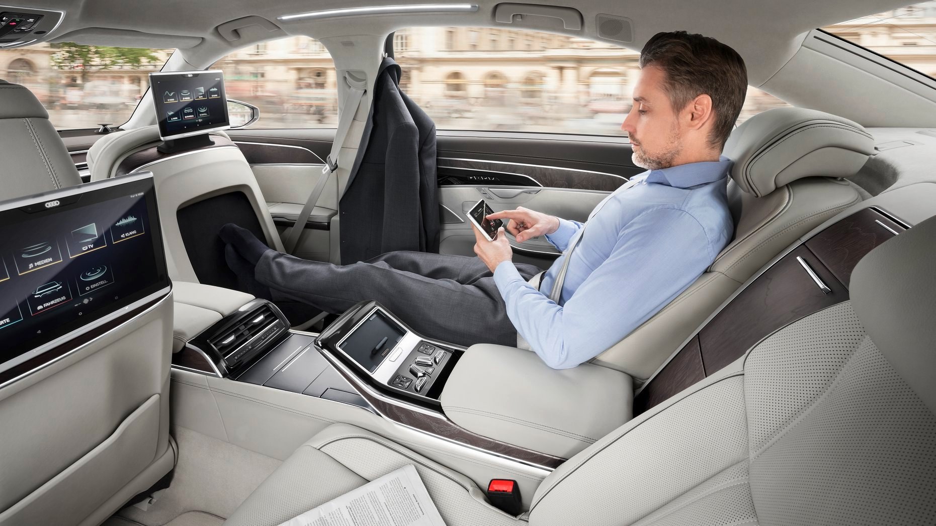 Audi A8-in interyerindəki komfort səviyyəsini təsvir etmək üçün bədii cümlələrə ehtiyac yoxdur. Masaj funksiyalı dəri oturacaqlar, Vehicle Noise Canselation funksiyası, çoxsaylı informasiya-multimedia sistemləri, incəliklərinə qədər düşünülmüş salon transformasiyası, istənilən yolda və sürətlərdə balanslı komfort yaradan dinamik şassi maksimal rahatlığı təmin edir. Məhz buna görə premium seqmentdə bir A8 var, bir də digərləri.