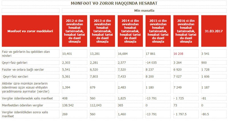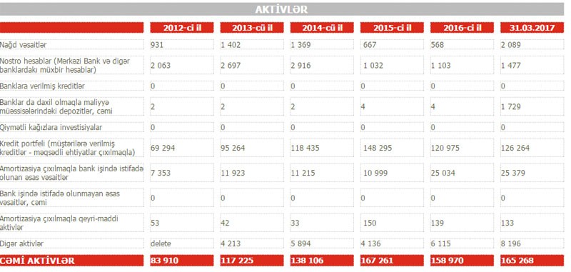Birinci rübdə Bankın kredit portfeli 120 milyon 975 min manatdan 126 milyon 264 min manata yüksəlib. Bankda depozitlər isə 67 milyon 598 min manatdan 71 milyon 642 min manata qalxıb.