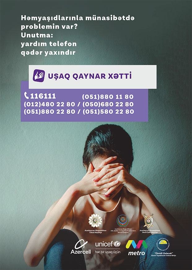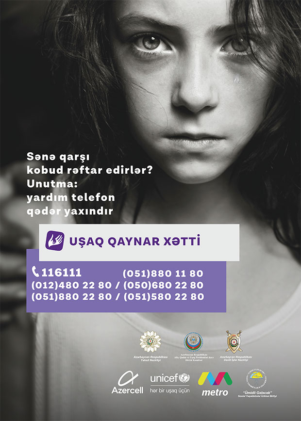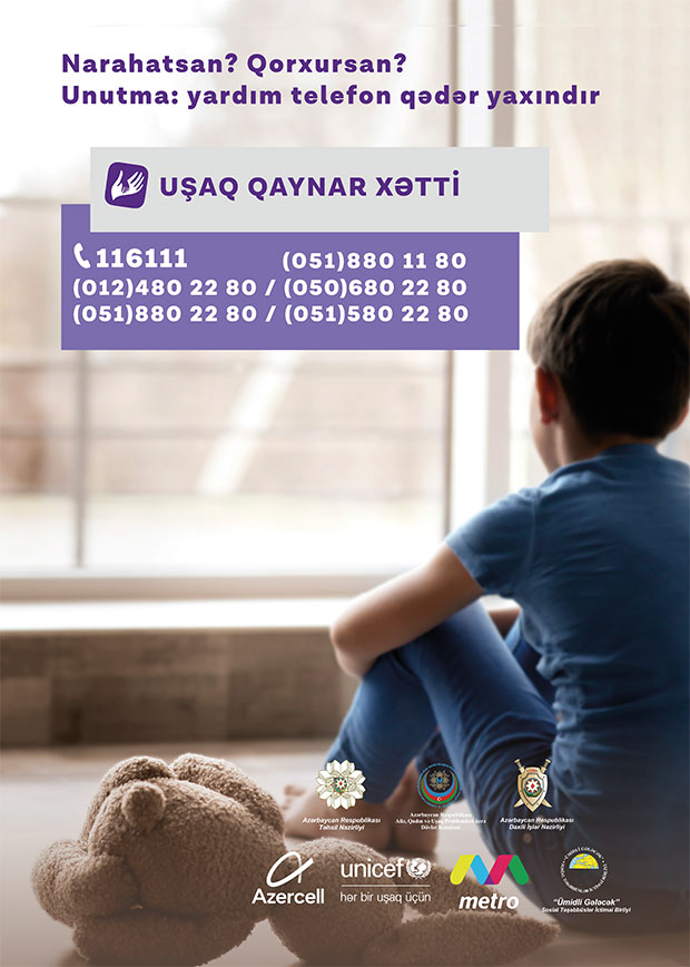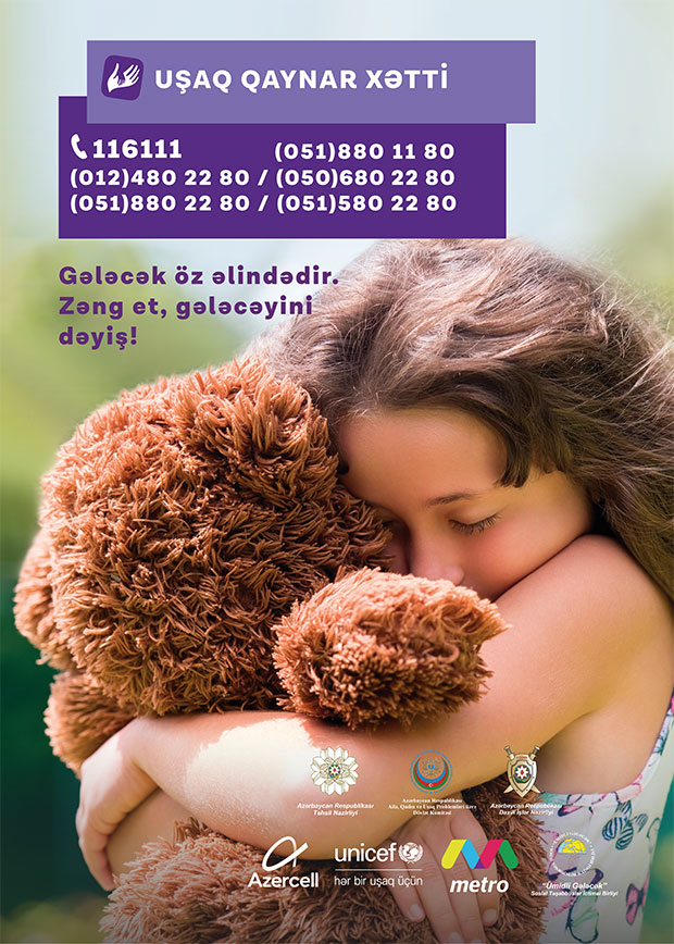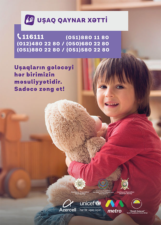Qeyd edək ki, "Azercell Telekom" MMC-nin dəstəyi, "Ümidli Gələcək İctimai Birliyi"nin təşkilatçılığı ilə 7/24 rejimi ilə fəaliyyət göstərən Uşaq Qaynar Xətt xidmətinə həm şəhərdaxili, həm də Azercell nömrələrindən edilən zənglər ödənişsizdir. Uşaq Qaynar Xətt xidmətinə daxil olan bütün məlumat məxfi saxlanılır.