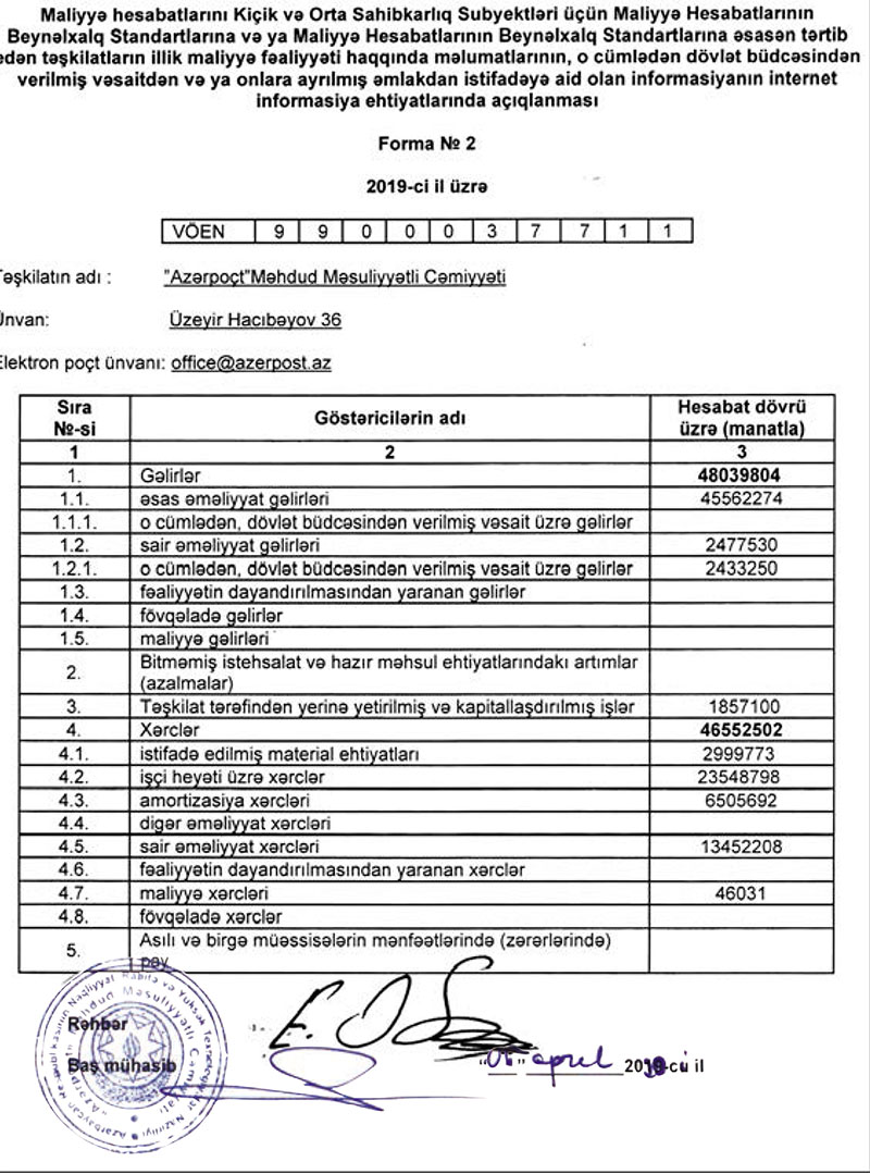 Azərbaycanın yeganə milli poçt operatoru olan“Azərpoçt” MMC 2019-cu ili 1 milyon 487 min manat mənfəət ilə başa vurub.
