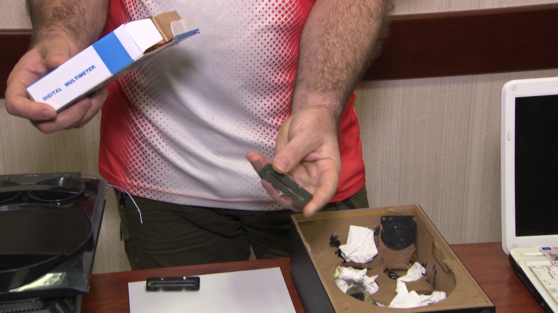 Həmin şəxslərin paytaxt ərazisində kirayə yaşadığı mənzilə baxış zamanı çoxsaylı elektron məlumat daşıyıcıları, bank kartlarından məlumatları ələ keçirmək üçün qurğular, bankomatlara quraşdırılması nəzərdə tutulmuş xüsusi avadanlıqlar, noutbuklar, müdaxilə etdikləri bankomatların yerləşdiyi ərazilərin siyahısı və sxemləri, eləcə də sair maddi sübutlar aşkar olunaraq götürülüb. Qrup üzvləri bankomatlara müdaxilələr etmək üçün əldə etdikləri xüsusi qurğuları ətrafdakı insanlarda şübhə oyatmamaq üçün daim özləri ilə gəzdirdikləri səsgücləndiricinin içində gizlədiblər.