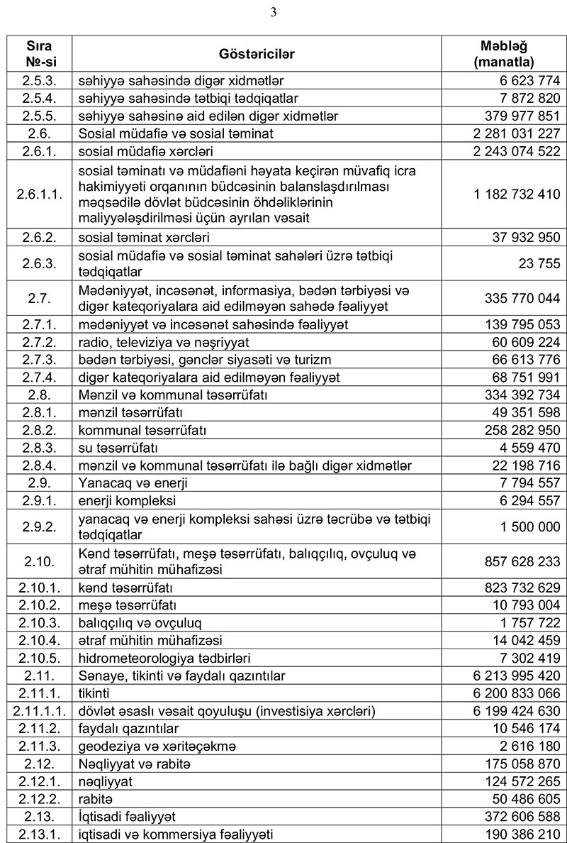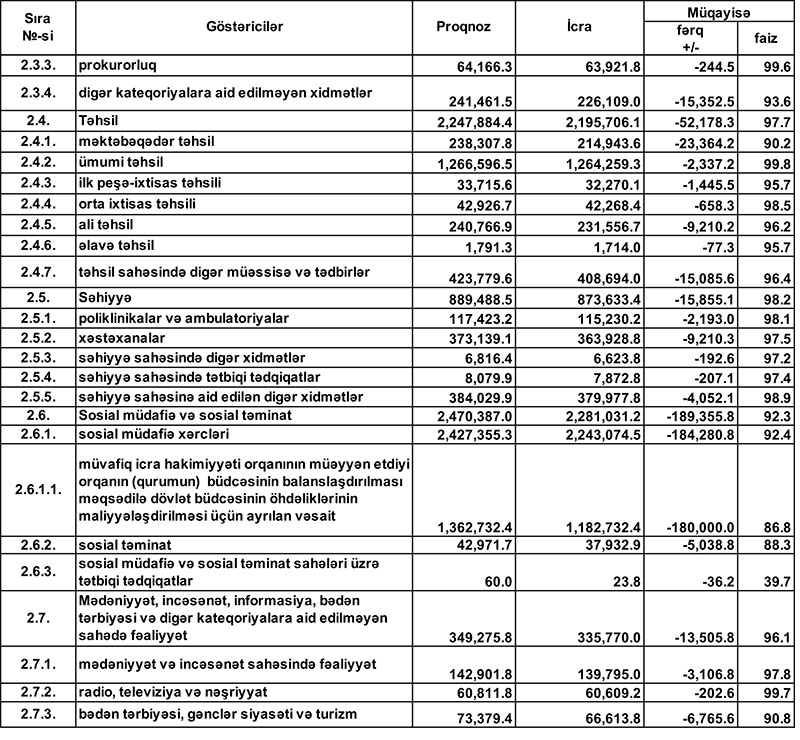 2019-cu il dövlət büdcəsinin icrasında dair məlumat