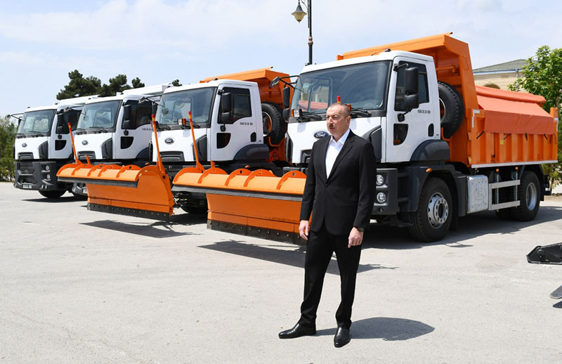 Prezident İlham Əliyev ölkənin başqa şəhərlərinin də belə texnika və nəqliyyat vasitələri ilə təchizatını təşkil etmək üçün təkliflər hazırlanması barədə tapşırıq verib.