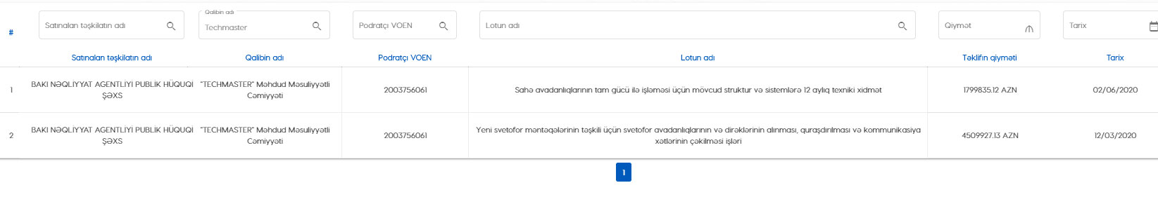 2020-ci ildə “Techmaster” şirkəri 2-ci dəfədir ki, Bakı Nəqliyyat Agentliyinin tenderində qalib olur.