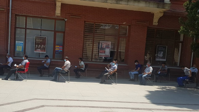 Filiallarımızın önündə olan növbələrə gəlincə isə, bu növbələr Daxili İşlər Nazirliyinin əməkdaşları tərəfindən tənzimlənir. Bundan başqa vətəndaşların sosial məsafəyə riayət etmələri üçün filialların qarşısında xüsusi nişanlar qoyulub və bu işlər hazırda da aparılır. Ümid edirik ki, tezliklə ölkədə olan xüsusi karantin rejimi bitəcək və biz əvvəllər olduğu kimi öyrəşdiyimiz iş şəraitinə qayıdacağıq.