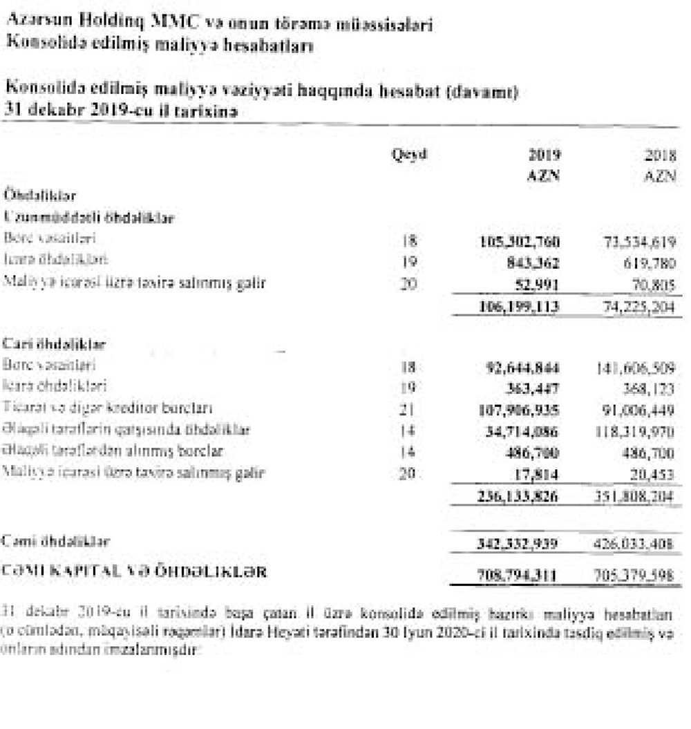 31 Dekabr 2019-cu il tarixində “Azərsun Holdinq” MMC 708 milyon manat cəmi aktivlərə malik olub. Şirkətin aktivləri il ərzində 0,5% artıb.