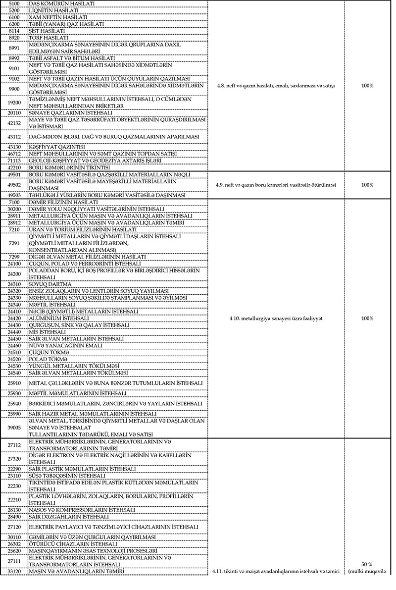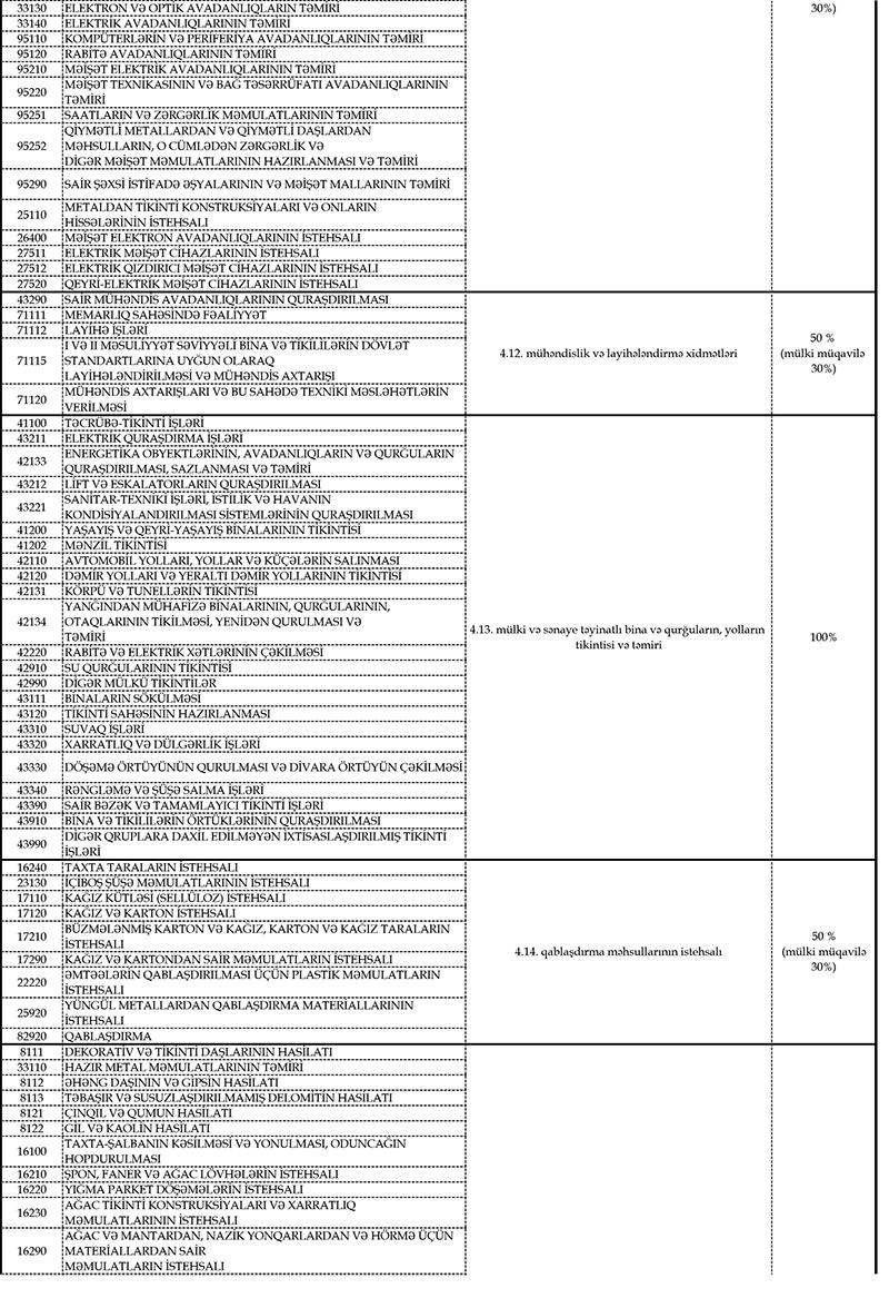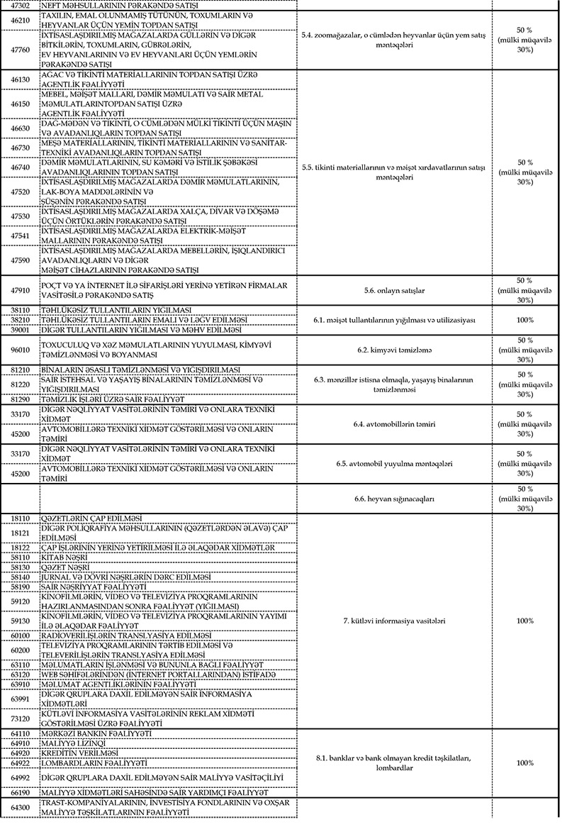İcazə almaq üçün fəaliyyət növünüzün (5 rəqəmli kodunun) Azərbaycan Respublikasının Nazirlər Kabineti tərəfindən fəaliyyətinə icazə verilən sahələrə uyğunluğunu yoxlamalasınız (fəaliyyət sahələri və kodları əlavə olunur).