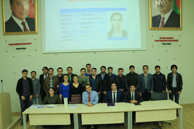 Daha sonra çıxış edən Maliyyə kafedrasının müdiri Dos. Elçin Süleymanov Maliyyə ixtisası tələbə və məzunlarının uğurlarından nümunələr göstərərək bu ixtisasın perspektivindən və əmək bazarındakı iş imkanlarından danışıb. O qeyd edib ki, maliyyə ixtisası tələbələrinə dunyanın qabaqcıl “Big Four”a (Böyük Dördlük) daxil olan audit şirkətləri olan Pricewaterhous , Deloitte, Ernst & Young , KPMG kimi şirkitlərdən böyük diqqət var. Hazırda bir çox tələbəmiz bu şirkətlərdə təlim və praktika keçməkdədir. Hazırda Azərbaycan və ingilis dilində tədris aparılan maliyyə ixtisasında 300 dən çox bakalavr və 31 magistr tələbəsi təhsil almaqdadır və onlardan 11 nəfəri Prezident təqaudcüsü və 126 dövlət sifarişli və bakalavr tələbələrindən yüzə yaxını 600 baldan çox bal toplayaraq qəbul olmuşdur.