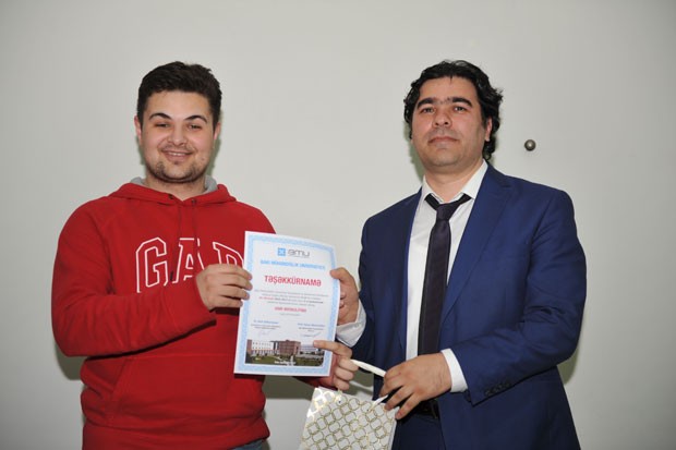 Tədbirdə çıxış edən İqtisadiyyat və idarəetmə fakültəsinin dekanı Dr. Yaşar Ehtibarlı tələbələri əldə etdikləri nəaliyyətlərə görə təbrik edib və bildirib ki BMU-nin rəhbərliyi tələbələrin akademik və sosial fəaliyyətlərini dəstəkləyir və mövcud bütün imkanlarla tələbələrin arxasındadır.