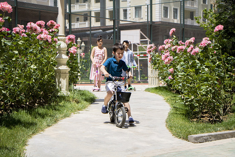 Valideynlər uşaq meydançalarında övladları ilə birlikdə asudə vaxtlarını keçirə bilirlər. Xüsusi nəzarət sistemi hesabına yad insanların kompleksə birbaşa girişi və çıxışı yalnız icazə əsasındadır. “Renessans Palace”da, həmçinin, sakinlərin rahatlığını və təhlükəsizliyini tam təmin etmək üçün “Avtomobilsiz həyət” prinsipi də əsas götürülərək aktiv zonaya avtomobillərin girişinə tam qadağa qoyulub. Həm sakinlərin özləri, həm də onların qonaqları üçün nəzərdə tutulan 3 mərtəbəli yeraltı qaraj isə məhz “avtomobilsiz həyat” yanaşmasını insanların rahatlığını pozmadan tətbiq etməyə imkan verir.