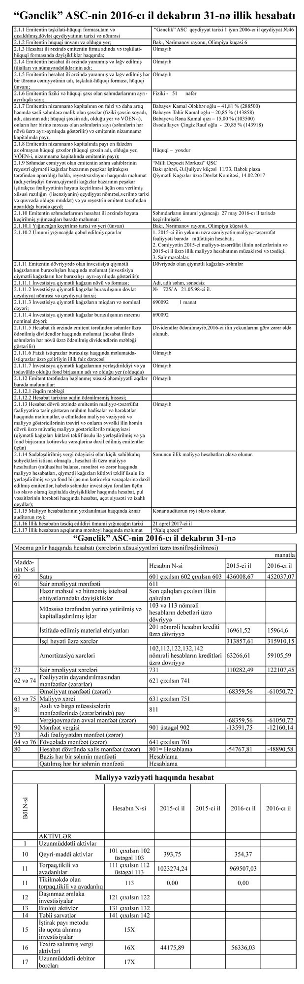“Marja” xəbər verir ki, 2015-ci ildə ASC-nin xalis zərəri 54 min 767 manat ikən, 2016-cı ildə zərər 48 min 890 manat təşkil edib.