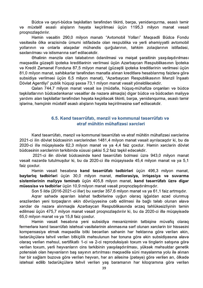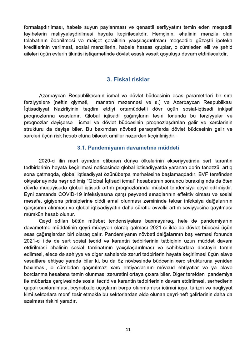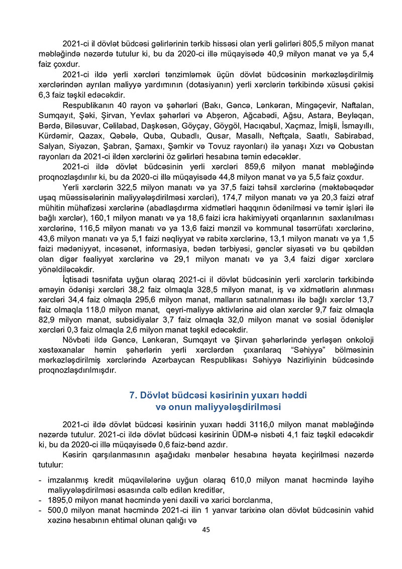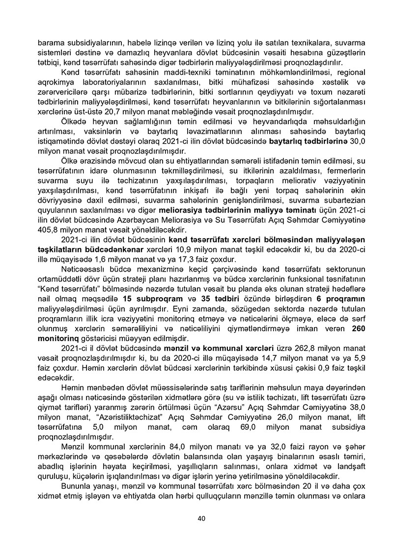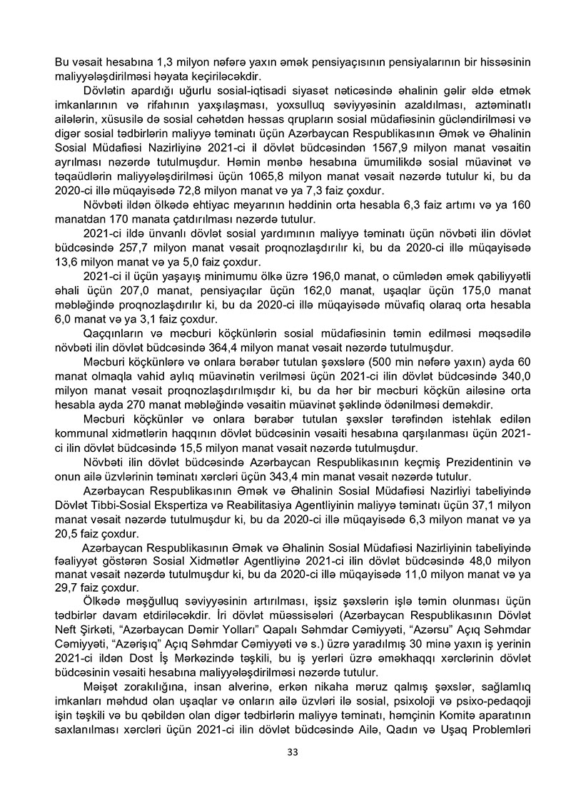 2021-ci il dövlət büdcəsi layihəsinə dair izahat - TAM VERSİYA