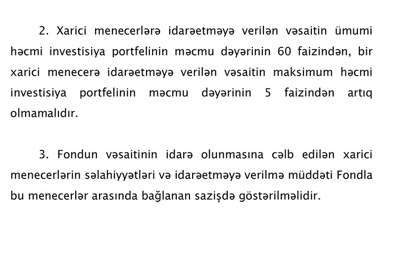 Marja xəbər verir ki, Fərman, Azərbaycan Respublikası Konstitusiyasının 109-cu maddəsinin 32-ci bəndini rəhbər tutaraq, Azərbaycan Respublikası Dövlət Neft Fondunun 2021-ci il büdcəsini formalaşdırmaq və Fondun valyuta vəsaitinin səmərəli idarə olunmasını təmin etmək məqsədilə qərara alırııb.