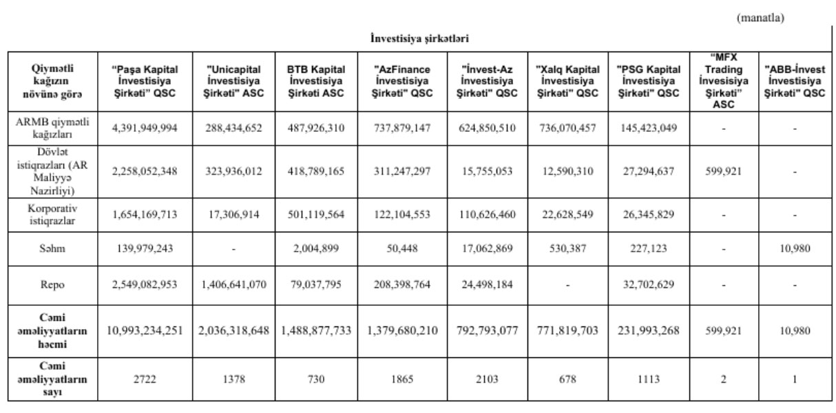 Birjanın yaydığı məlumatda bildirilir ki, nəticə olaraq, ötən ilin müvafiq dövrü ilə müqayisədə ümumi təkrar bazar üzrə ticarət həcmində 47%, korporativ qiymətli kağızlar bazarı üzrə 89%, repo əməliyyatları üzrə isə 92%, səhmlər üzrə ilkin bazarda 71 misli, səhmlər üzrə təkrar bazarında isə 9 misli qədər böyümə qeydə alınmışdır.