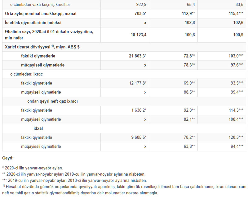 Azərbaycannın 2020-ci ildə ÜDM istehsalının həcmi açıqlandı