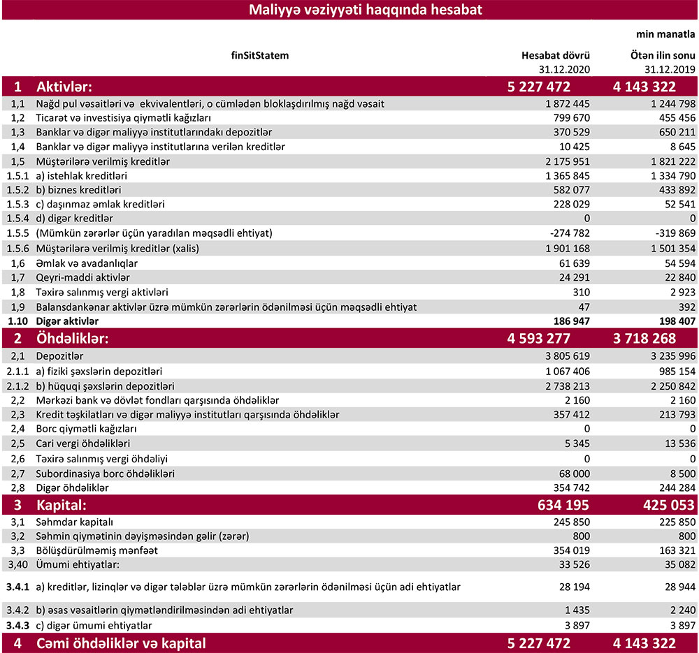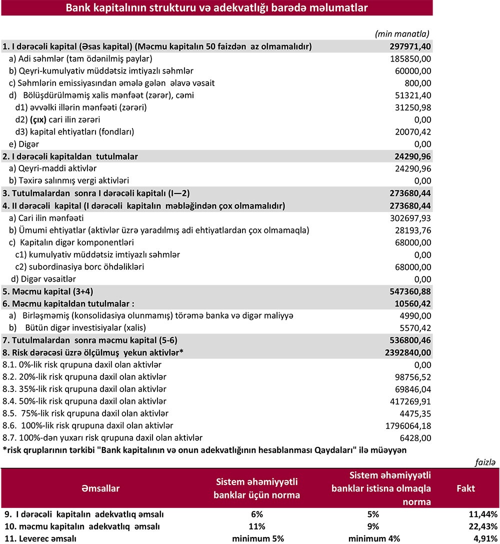2020-ci ilin sonunda Kapital Bank 547 milyon 361 min manat məcmu kapitala malik olub.