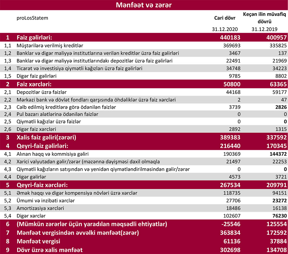 Bank 2019-cu ili 134 milyon 708 min manat xalis mənfəət ilə bağlamışdı.