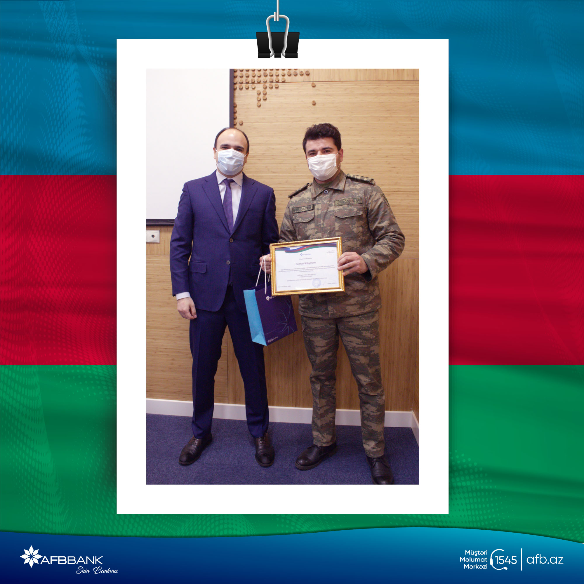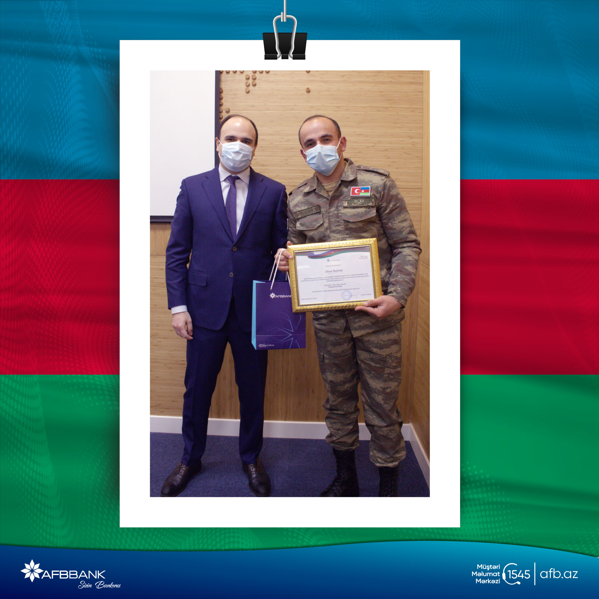 “Bankımızın Sizin kimi vətənpərvər və qəhrəman əməkdaşlarının olması bizi qürurlandırır. Sizinlə fəxr edir və Sizin timsalınızda bütün “Vətən Müharibəsi” iştirakçılarına öz təşəkkürmüzü bildiririk. Torpaqlarımızın azadlığı uğrunda həyatını fəda edən Şəhidlərimizə Allahdan rəhmət və ailələrinə, doğmalarına səbr diləyirik.”