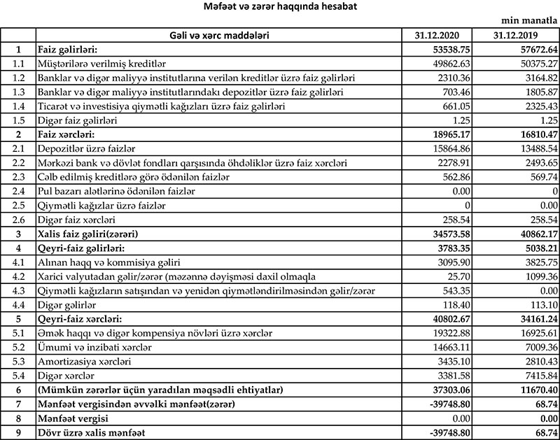 Marja Bankın maliyyə hesabatlarına istinadən xəbər verir ki, Yelo Bank 2020-ci ili 39 milyon 748 min manat xalis zərər ilə başa vurub. Müqayisə üçün qeyd edək ki, Bank 2019-cu ili 68,7 min manat xalis mənfəət ilə bağlamışdı.