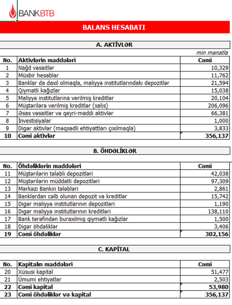 Bank BTB-nin əməliyyatı mənfəətdə qalıb– MALİYYƏ VƏZİYYƏTİ