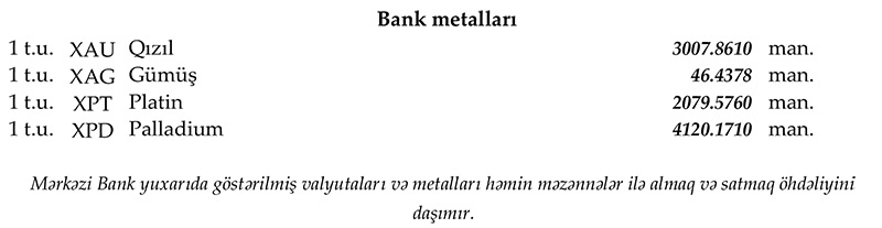Rəsmi məzənnələr açıqlandı