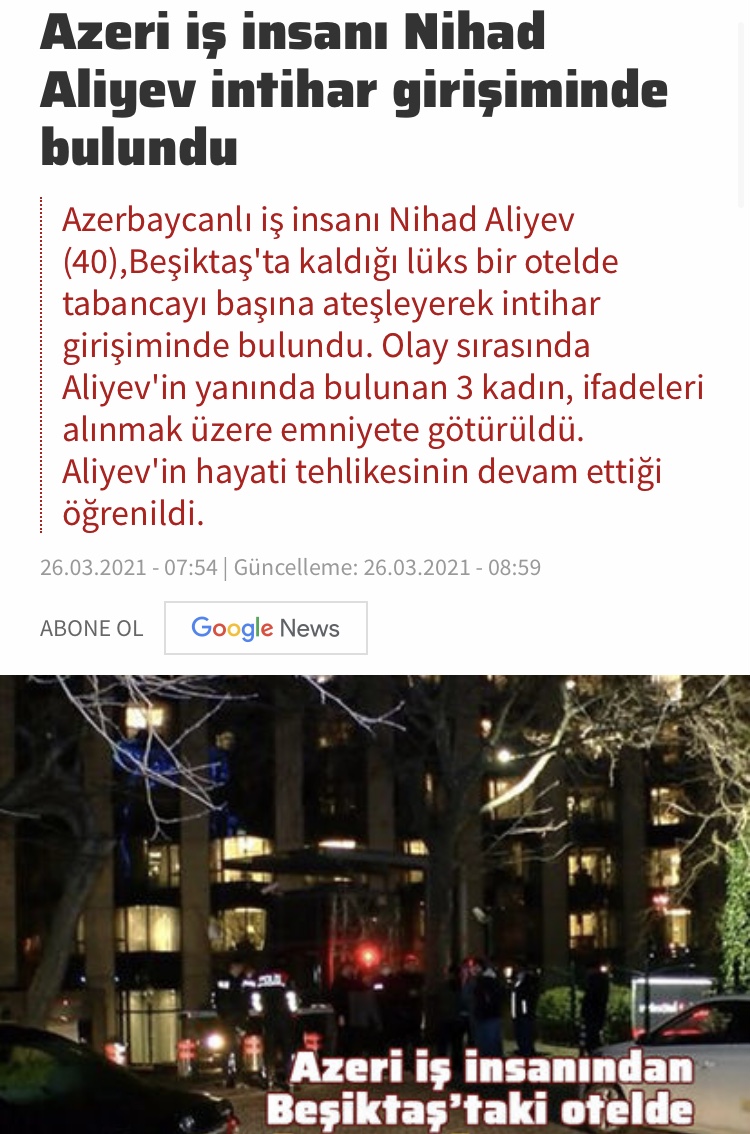 Məlumatına görə, hadisə dünən axşam saatlarında İstanbulun Beşiktaş səmtindəki lüks otellərdən birində baş verib. Hadisənin intihar olması, eyni zamanda ehtiyatsızlıqdan baş verdiyinə dair məlumatlar var.