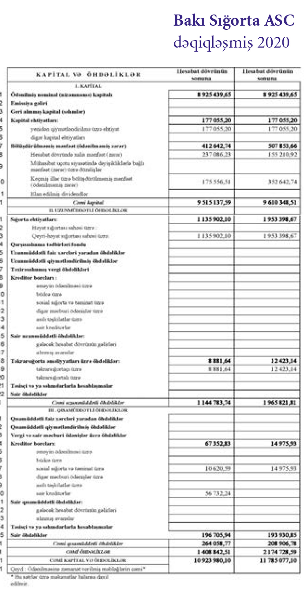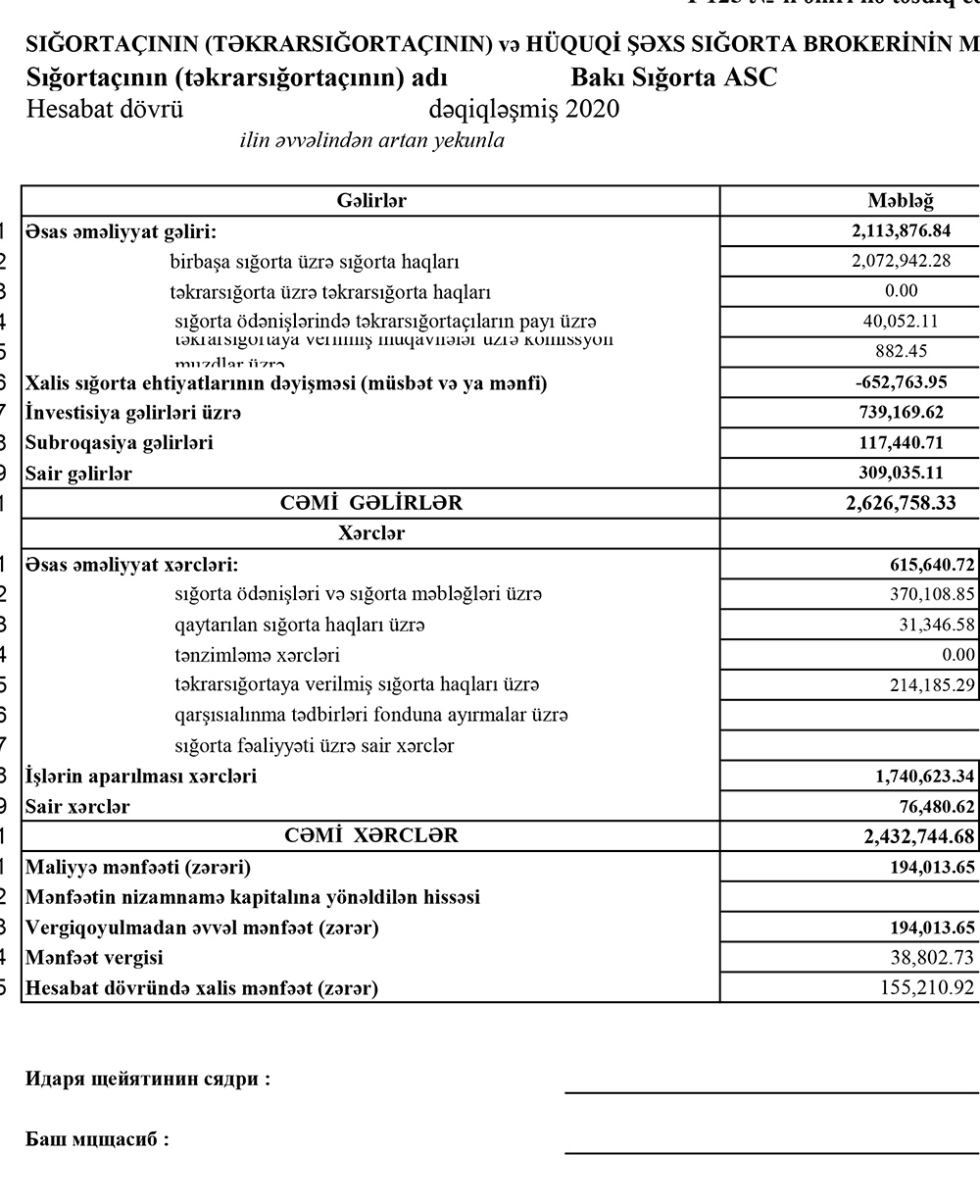 "Bakı Sığorta" ASC 2020-ci ili 155 min manat xalis mənfəətlə başa vurub. Şirkət 2019-cu ili 237 min manat xalis mənfəətlə bağlamışdı.