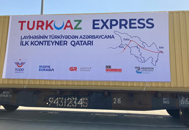 “Azərbaycan Dəmir Yolları” QSC-nin törəmə şirkəti olan “ADY Konteyner”- in Türkiyə və Gürcüstandan olan tərəfdaşları ilə birgə hazırladığı yeni logistik məhsul - TURKUAZ ekspres konteyner qatarı həftədə iki dəfə olmaqla İstanbul (Asiya hissəsindən) və Mersin ətrafından Bakıya və əks istiqamətdə yükdaşımalar həyata keçirəcək.